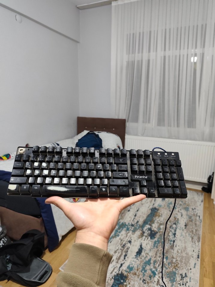 Piranha siyah kablolu klavye, tam düzen ve sayısal tuş takımı ile canlı koyu tuşlar sunar. ⌨️
