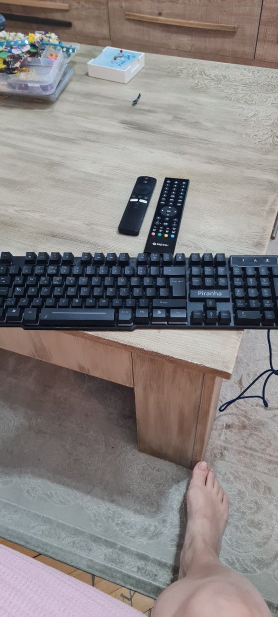 Piranha markalı siyah kablolu klavye, tam boy tuş düzenine sahip ve günlük kullanım için uygundur. bilgisayara taktığımda ışıkları çalışıyor ama yazı yazmıyor Ben de pek anlamıyorum o yüzden çalışmıyor olarak koyuyorum ilana ️