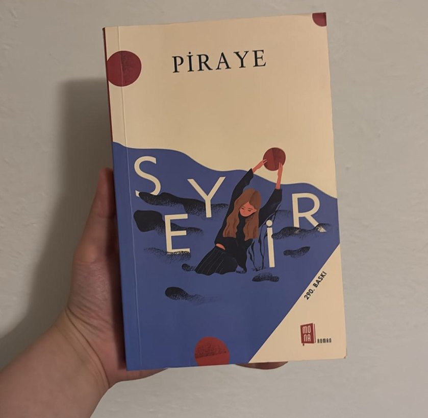 Piraye, üzerinde harflerin arasında yukarı doğru uzanan bir kadının illüstrasyonu bulunan bir roman. MANA Kitapları tarafından 28. baskı.