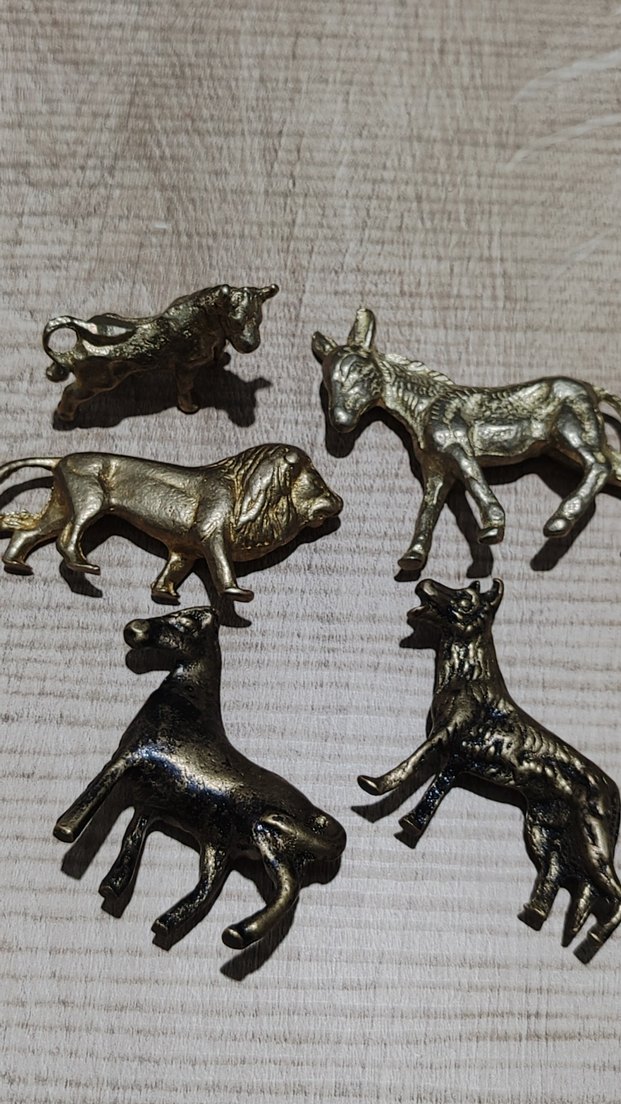 PİRİNÇ malzemeden üretim , Aslan, Eşek, Boğa , Kurt ve At figürlerinden oluşan detaylı hayvan figürleri lotu, içleri dolu ağır modellerdendir 5 lı set halinde Aynı gün kargo
