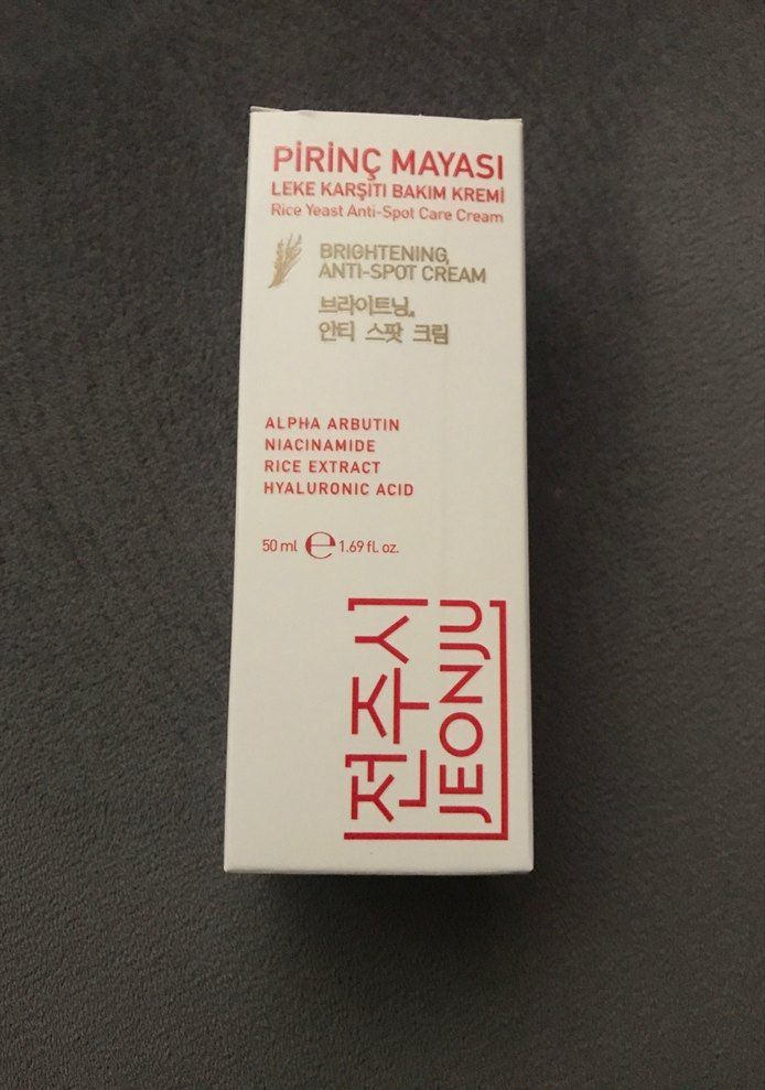 Niacinamide, alpha arbutin, pirinç özü ve hyaluronik asit içeren 50ml leke karşıtı aydınlatıcı bakım kremi. ✨
