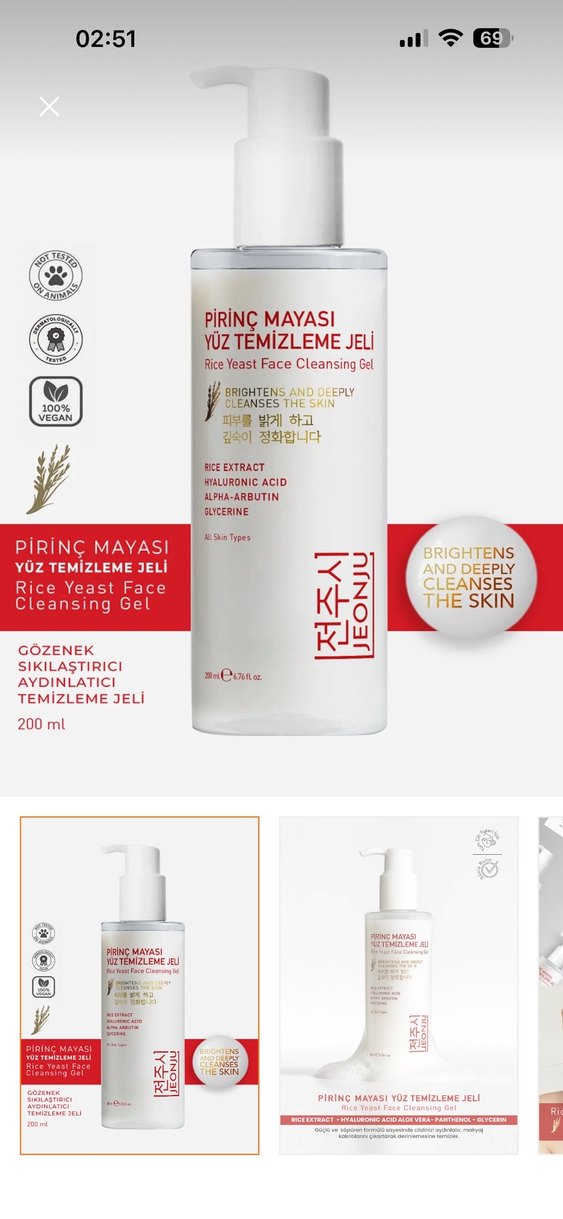 Pirinç mayası içeren yüz temizleme jeli, cildi derinlemesine temizler, aydınlatır ve gözenekleri sıkılaştırır. Tüm cilt tipleri için uygundur.
