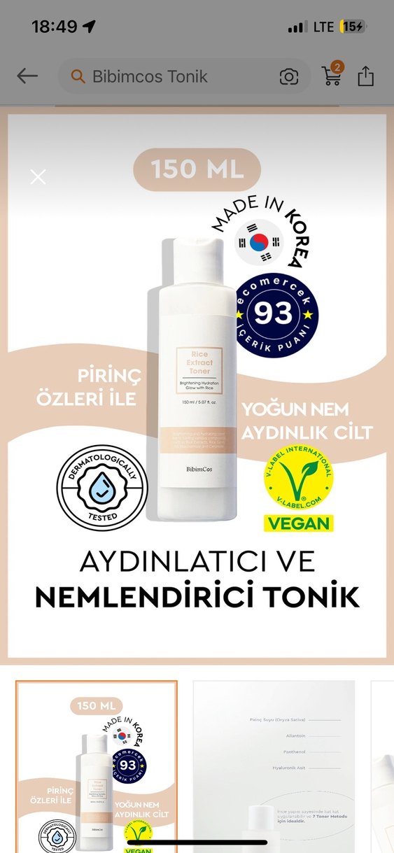 Pirinç özlü tonik, cildi yoğun nemlendirir ve aydınlatır. Vegan ve dermatolojik olarak test edilmiştir. Kore üretimidir.