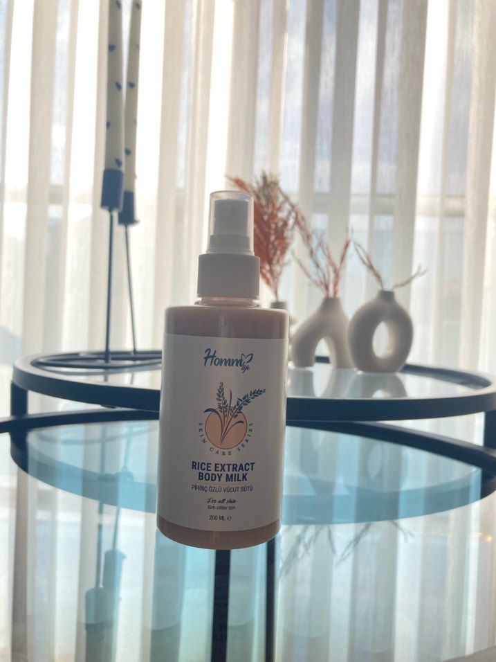 Pirinç özü içeren bu vücut sütü, cildi besler ve nemlendirir. Kolay kullanım için sprey şişede sunulur.