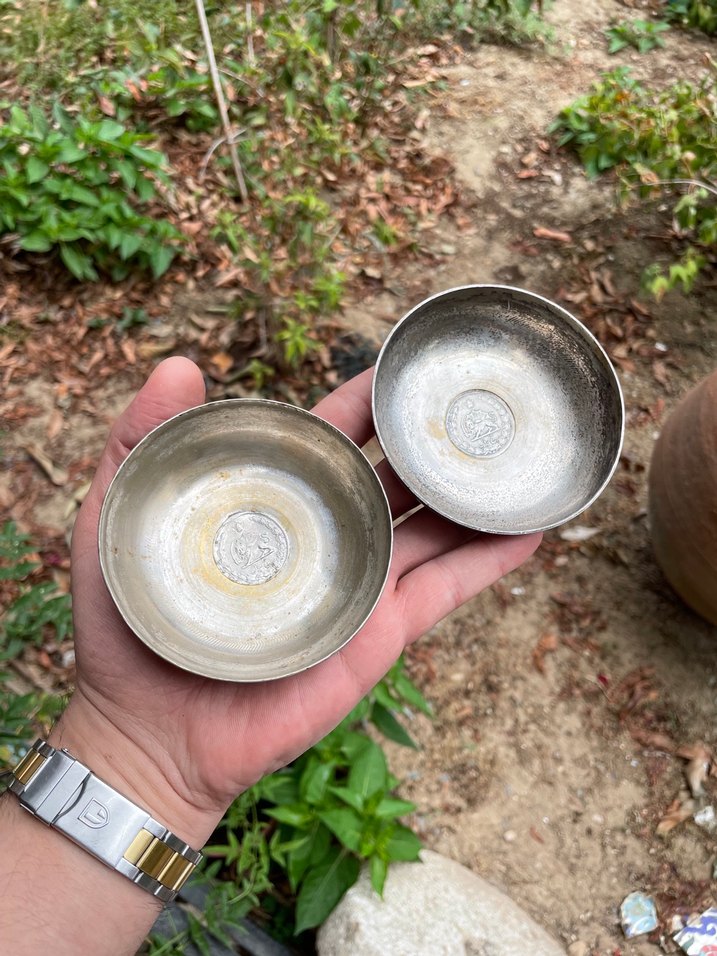 Gri ve beyaz tonlarında, iki küçük pirinç antika tabak. Hem dekoratif hem de kullanışlıdır. ️