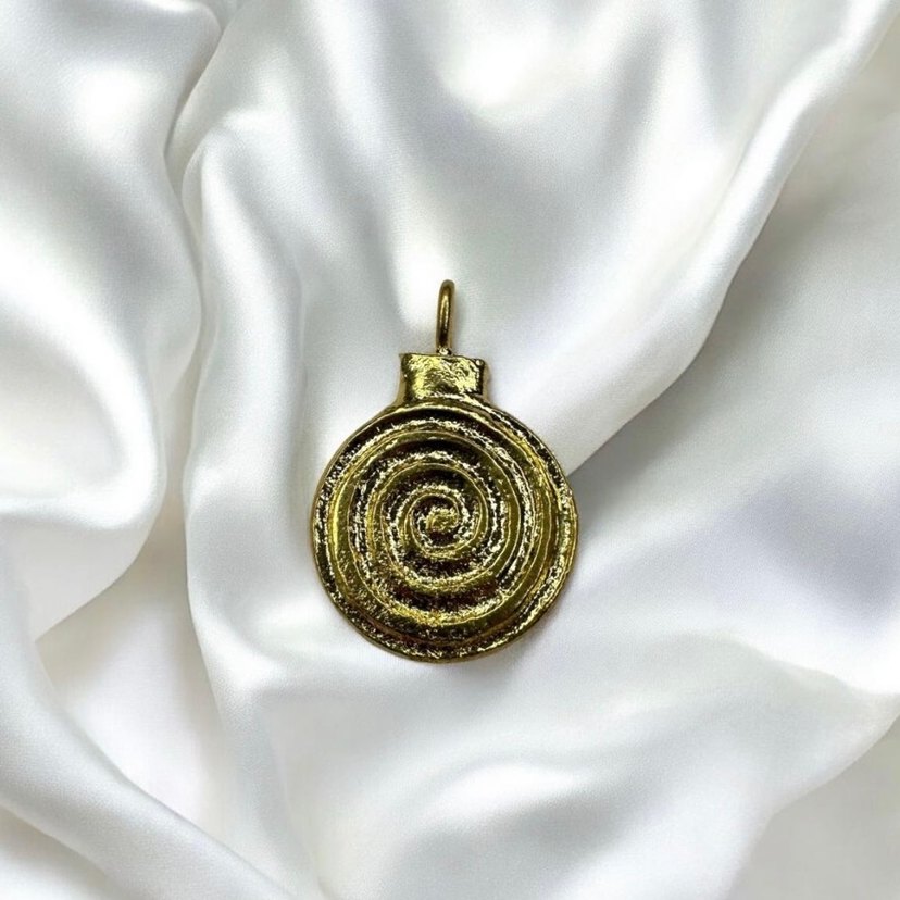 Pirinç Üzeri Altın Kaplama Spiral Desen Kolye Ucu