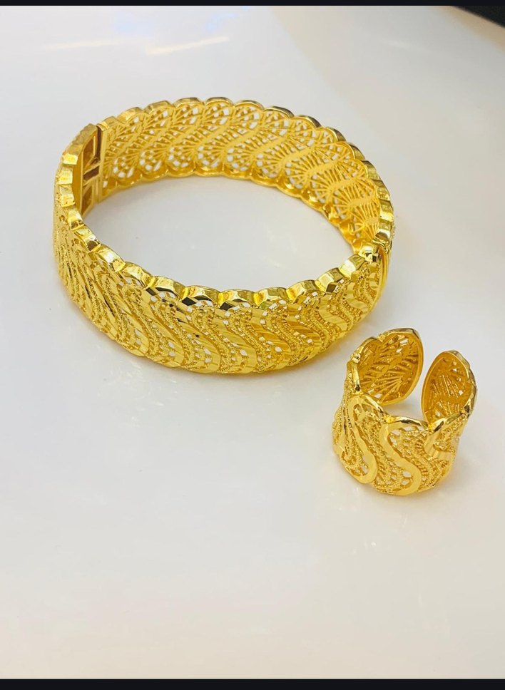 pirinç üzerine altın kaplama bileklik ve yüzük seti. Düğünler için uygun, renkli ve gösterişli, aynı zamanda sade bir tarz sunar. ✨ kimyasallardan uzak tutunuz!!