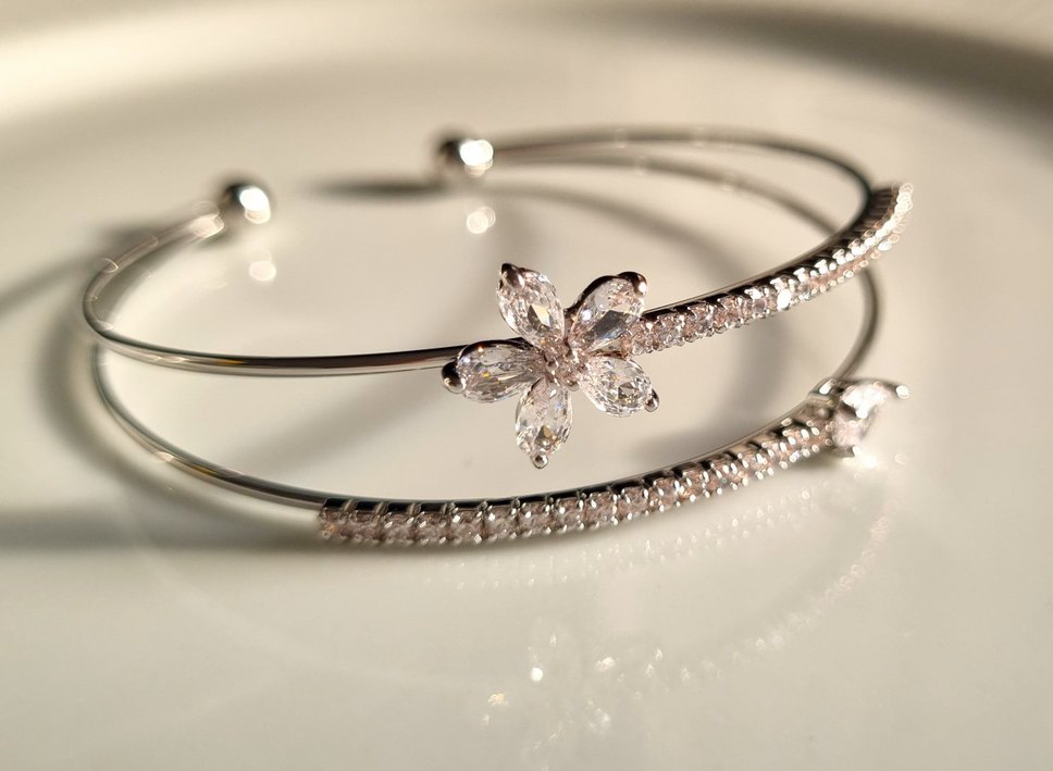 Gelinlik için uygun, beyaz renkte, çiçek desenli ve pullu modern kadın bilekliktir. Klasik zarafeti ışıltılı bir dokunuşla buluşturur. Vip ürünler pirinç (bronz) hammaddesi kullanılarak üretilmektedir. Kaplamaları üst kalite olan bu ürünler, sıvıya karşı dayanıklı, kararma yapmayan, antialerjik ve günlük kullanıma uygundur. Ürün süslemelerinde kullanılan taş cinsi zirkon taştır.
