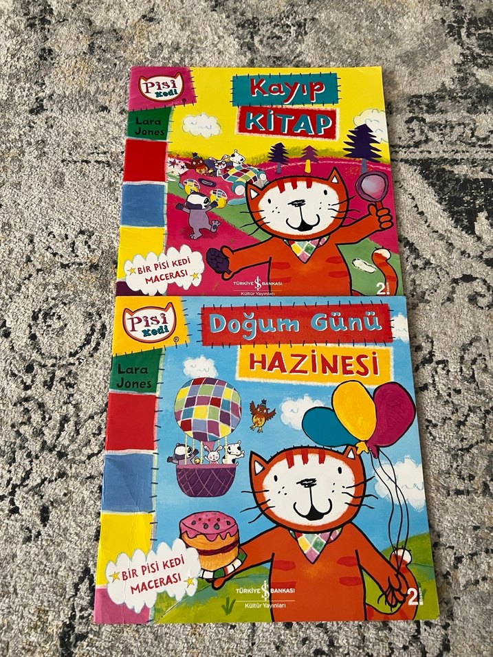 Pisi Kedi'nin maceralarını anlatan iki çocuk kitabı: 'Kayıp Kitap' ve 'Doğum Günü Hazinesi'. Canlı resimler ve eğlenceli hikayeler içerir.