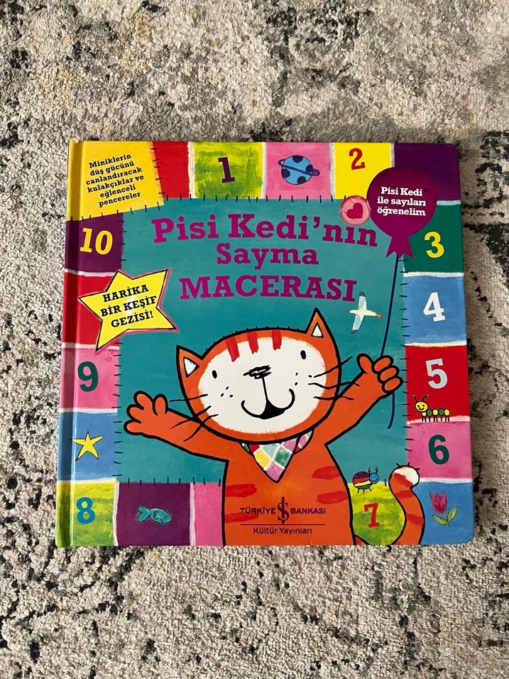 Pisi Kedi'nin 1'den 10'a sayma macerasını anlatan, renkli sayılar ve eğlenceli çizimlerle dolu çocuk kitabı.
