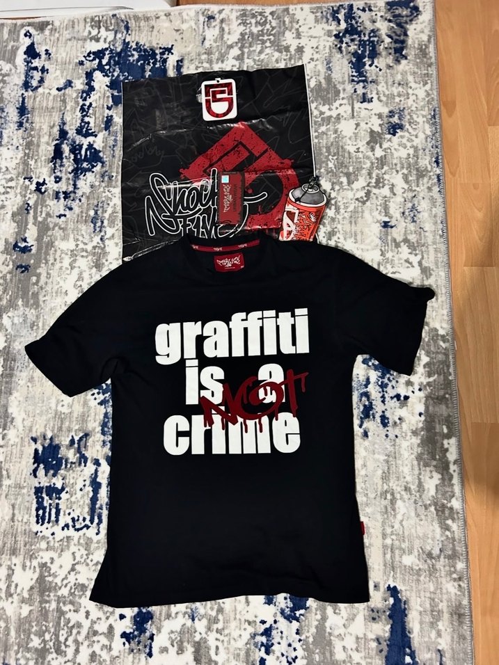 Pislick Tişört - Graffiti is Not a Crime - M BEDEN BOY: 75 - EN: 52 Geçen bir çizgi çektim ve dedim sanat suç mu?