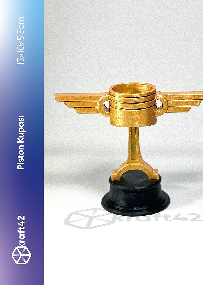 Piston Kupası Arabalar (Şimşek Mekkuin) serisinin efsane kupası Piston Kupası evinize geliyor! Ürün Özellikleri Ürün Adı Piston Kupası Ürün Kodu 006 Boyut 13x10x5.5 (En-Boy-Derinlik) Materyal Creality Hyper PLA Renk Altın Sarısı / Siyah Ağırlık Yaklaşık 50gr Boyama NovaColor Gold Kaplama ArtDeco Ekstra Parlak Vernik Ürünler kişiye özel üretildiğinden dolayı ufak gecikmeler yaşanabilir. Kargoda oluşabilecek hasarları doğrulayabilmek için lütfen paketinizi açarken video kaydı alınız.