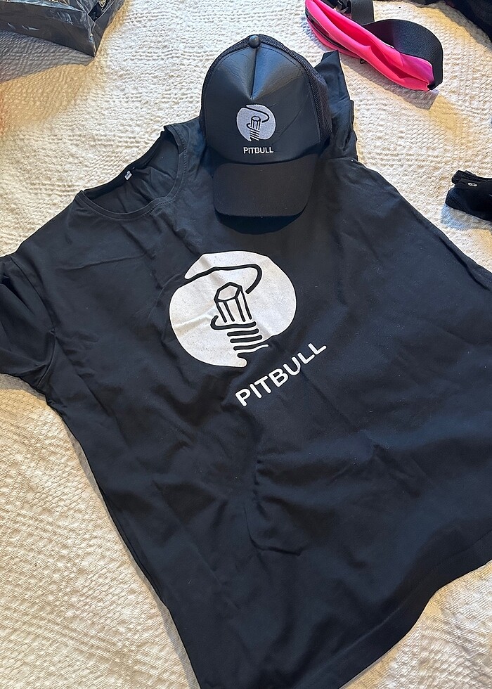 Pitbull Strings Tshirt ve şapka. Tshirt sadece yıkandı. Baskı yıkanmaya bağlı çatladı. Şapka sert telalı olanlardan biraz kırışık ama takınca düzelir. Tshirt xl şapka standart beden.