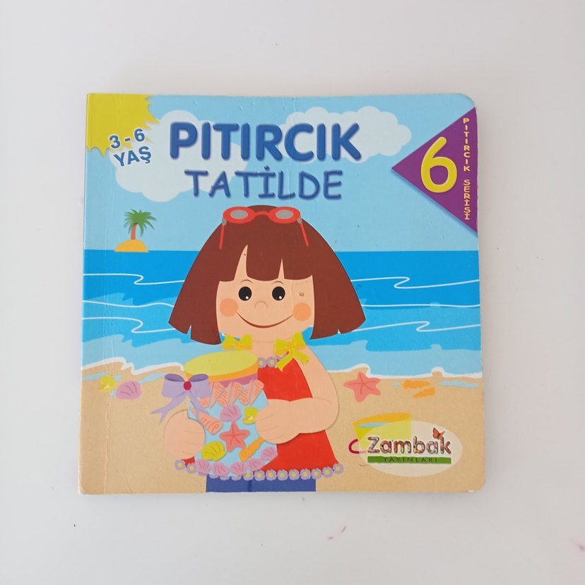 3-6 yaş çocuklar için hazırlanan "Pıtırcık Tatilde" kitabı, renkli çizimler ve basit hikayeler içerir.7sayfa,sert ve kalın sayfalar