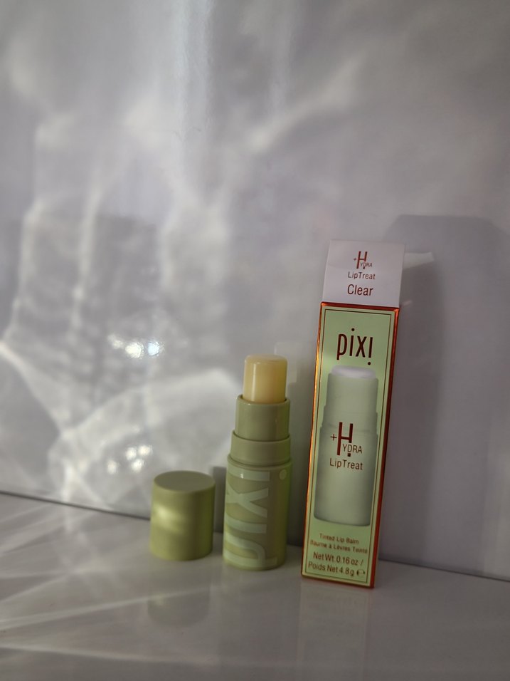 Pixi Clear Hydra LipTreat dudak bakım balsamı, açık bej renkte nemlendirici bakım sağlar. Ambalajı sade ve kullanışlıdır.
