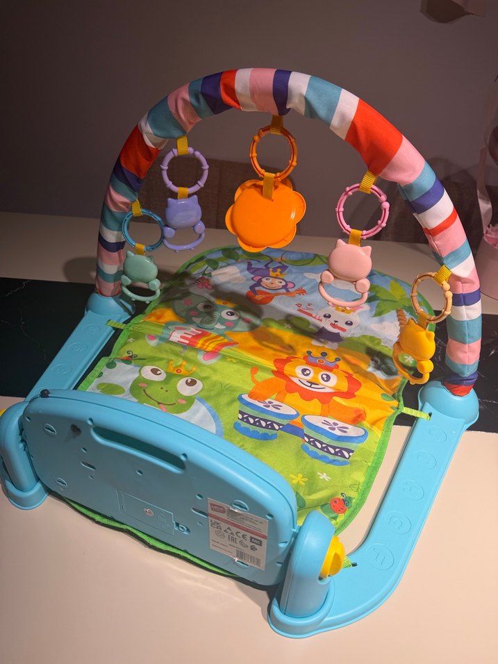 2 ay kullanıldı Renkli plastik çerçeveli, asılı oyuncaklı bebek oyun halısı, yürümeye başlayan çocuklar için uygundur.