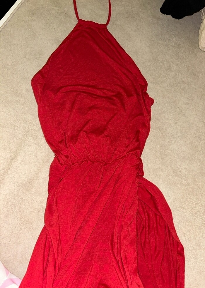 hiç bir kusuru yok az ve temiz kullanıldı yırtmaçlı ince kumaş boyundan bağlamalı uzun plaj elbisesi standart bedendir m-l-xl-xxl iseniz istediğiniz gibi durur
