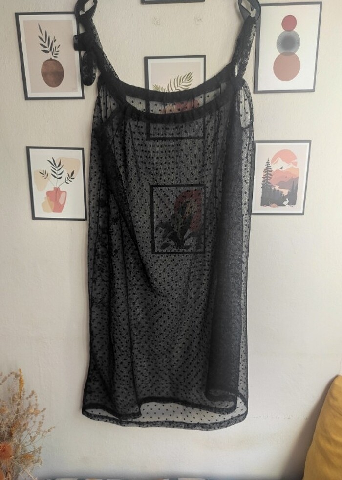 Sıfır üründür. İster bikini üstü elbise ister babydoll... Standart bedendir. Yakadaki ipten ayarlanabilir.