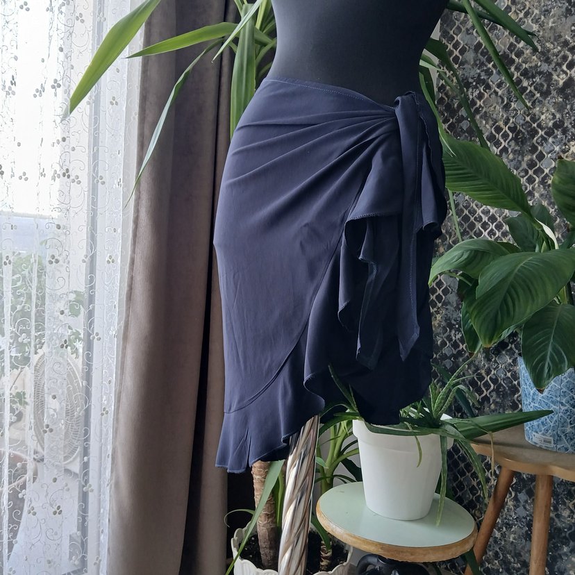 Lacivert renk volan detaylı standart beden olup belden bağlanarak her bedene göre ayarlanabilir.