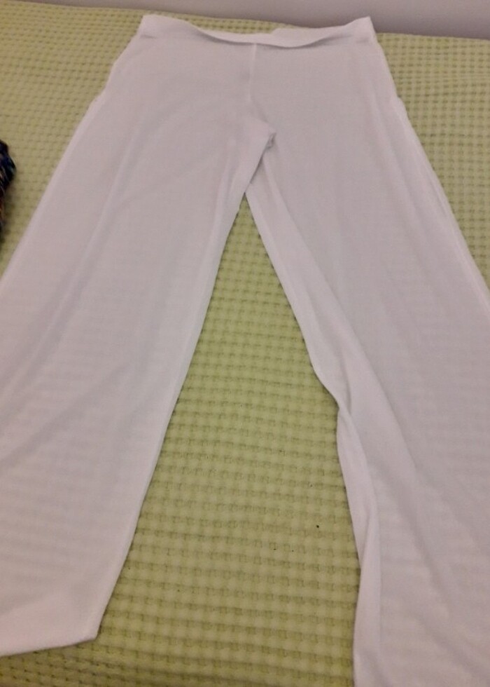 Beyaz şifon her iki yandan uzun yırtmaçlı plaj pantolonu