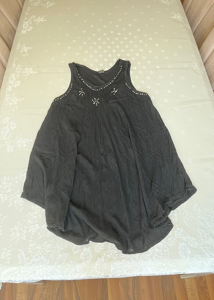 Çok az giyildi, sorunsuz. Hem 36 hem 38 bedene uyum saglar nakışları ve pulları düşmez