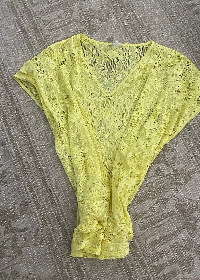 Oversize , tül , koltuk altı 60 cm, omuzdan boy 73 cm ucu fırfırlı, pareo