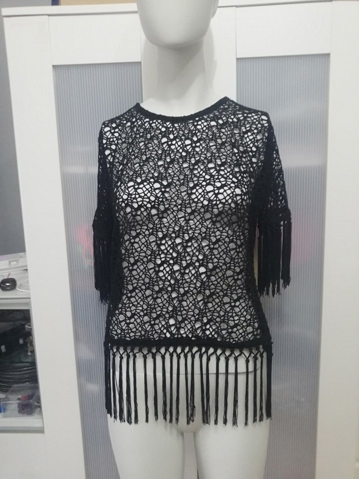 Siyah renk. Örgü değil. 36 beden. Markası busem. Polyester kumaş.