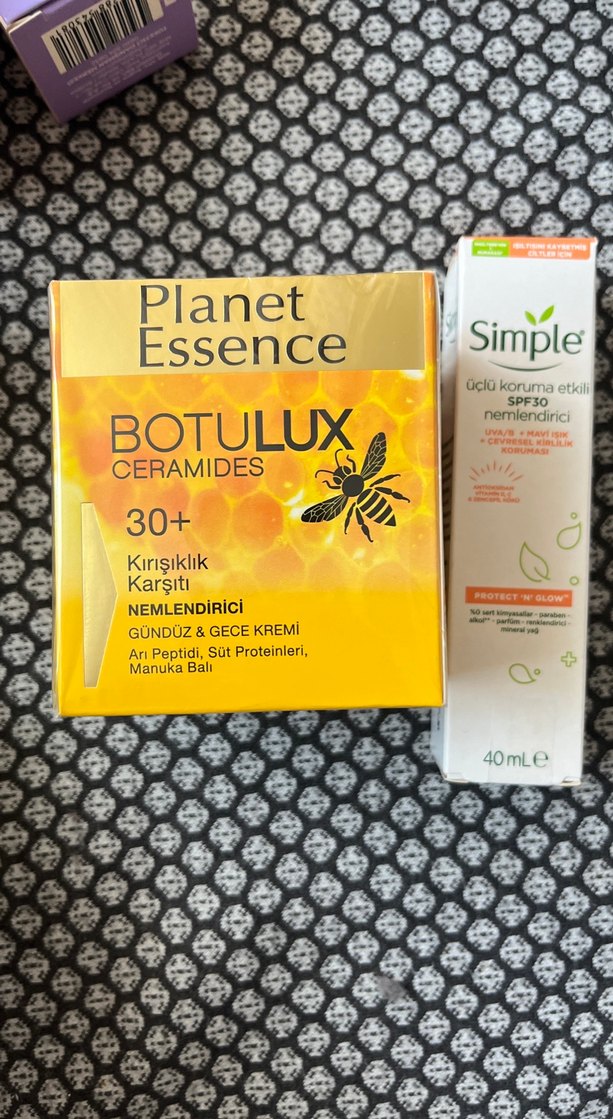 Planet Essence Botulux 30+ ceramide içeren, arı peptidi, süt proteinleri ve manuka balı ile kırışıklık karşıtı gündüz & gece nemlendirici krem. Simple SPF30 korumalı nemlendirici.