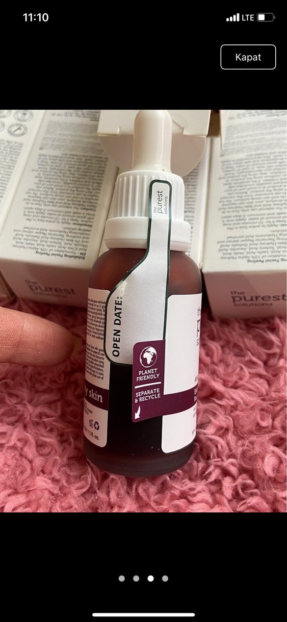 Yaşlanma karşıtı serum, kahverengi damlalıklı şişede ve çevre dostu ambalajda sunulur. Cilt sağlığını destekler, ayrı geri dönüşüm teşvik edilir.