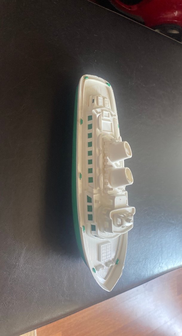 Bu model set, güvertede detaylı yapılar bulunan açık beyaz renkli bir gemi tasarımına sahiptir. Plastik