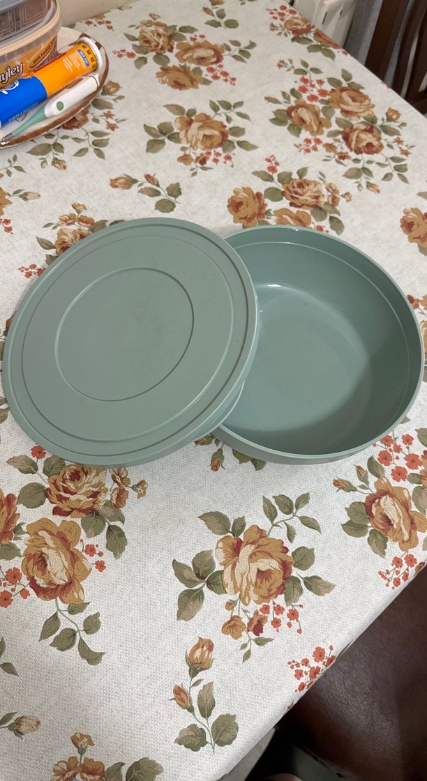 Mutfakta kullanıma uygun, kapaklı yuvarlakplastik saklama kabı. 1.8 lt