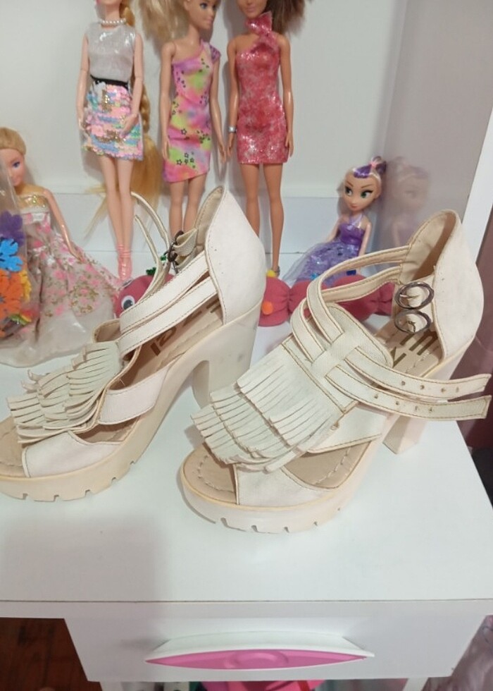 Hiç kullanılmadı sıfırdır.Ama ayakkabılıkta beklemekten çok küçük önemsiz lekeler oluşmuş . Marka temsilidir .Rengi krem renktir.Topuk boyu 11 cm dir