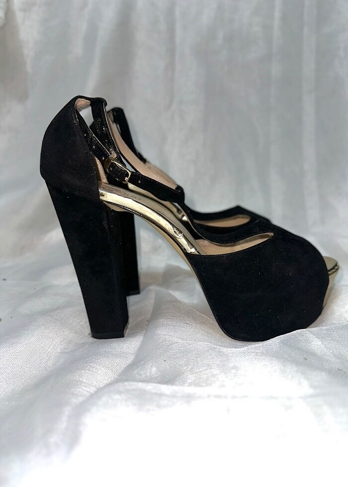 Bilek kemerlerinde biraz dökülmesi var, onun dışında sağlamdır. Az kullanıldı fakat zamanla ayakkabıda görselde belirtilen deformeler oluştu. Topuk boyu 13 cm’dir 40 numaradır. Annem artık giyemiyor o yüzden satıyoruz
