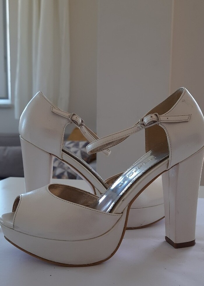 kırık beyaz gelinlik altı 12cm platform topuk. 1 kez düğünde bir kaç saat giyildi temiz sende kutusunda alıcısini bekliyor.