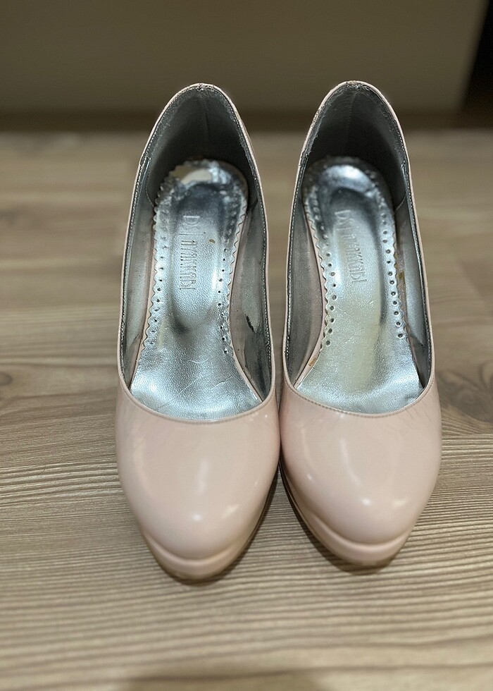Platform topuklu 37 numara pudra rengi rugan kullanılmıştır