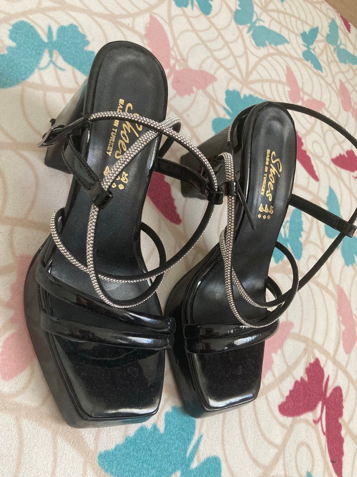 Sadece 1 kere giydim 38 beden çapraz dolama taşlı yeniden farksız hiçbir deformesi yoktur yepyeni .topuğu 10 cm platform topuklu çok şık özel gün ayakkabısı