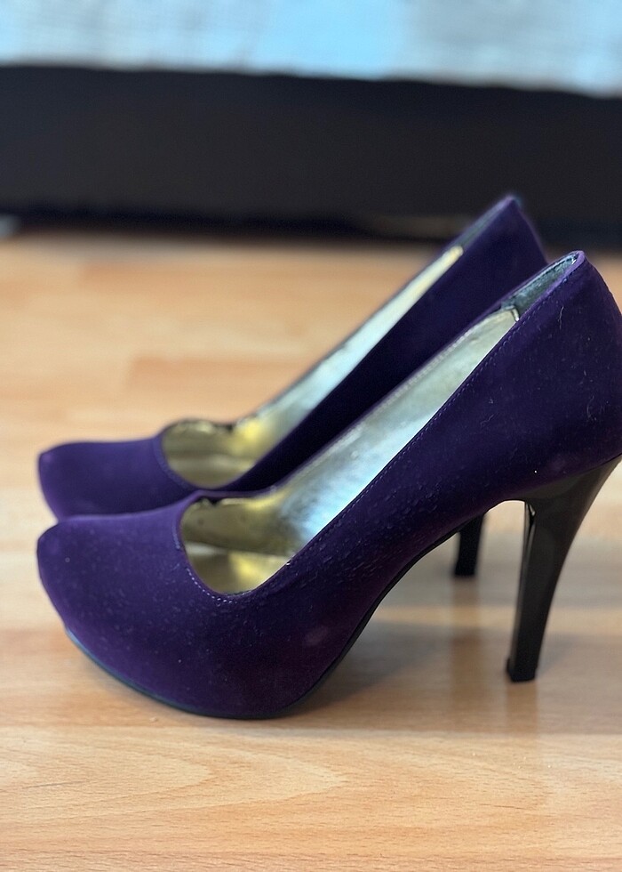Platform topuklu mor süet ayakkabı