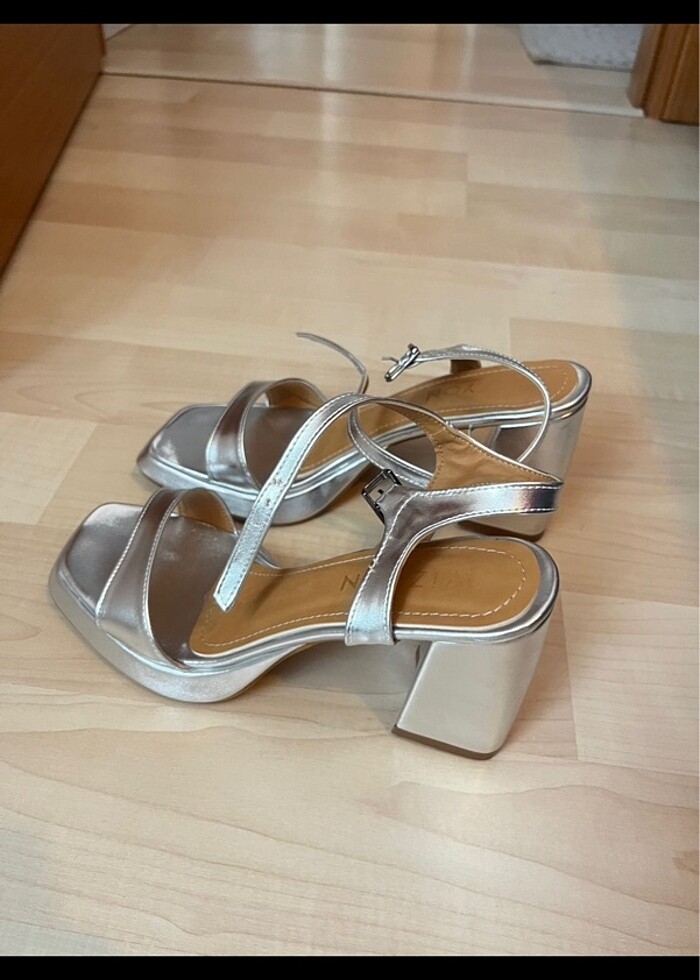 Platformlu kalın topuk gümüş topuklu ayakkabı - Görsel 1
