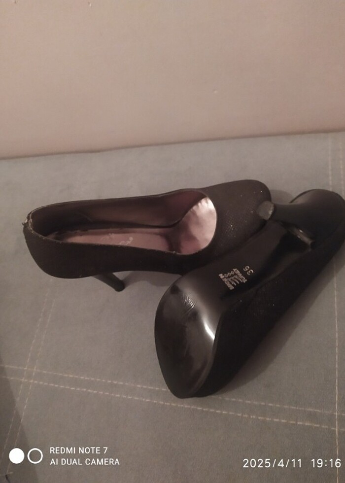 Siyah simli bir kere kullanılmış 36 numara topuklu ayakkabı