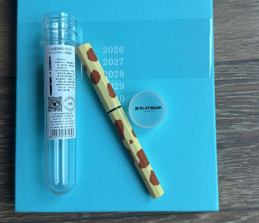 Platinum markasına ait pastel bej renkte, benekli inek tasarım dolma kalem