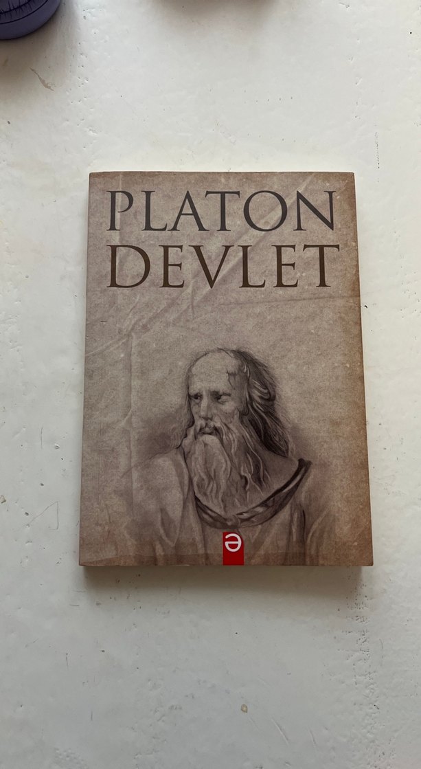 Platon'un "Devlet" adlı eseri, adalet ve ideal toplumu konu alan klasik bir felsefi romandır. Kapakta Platon'un çizimi yer alır.