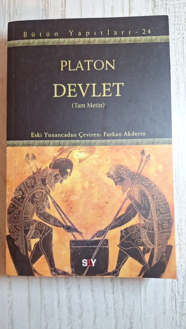 Platon'un Devlet adlı eseri, Furkan Akderin tarafından Eski Yunancadan tam metin olarak çevrilmiştir. Kitap kapağında klasik bir resim bulunmaktadır.