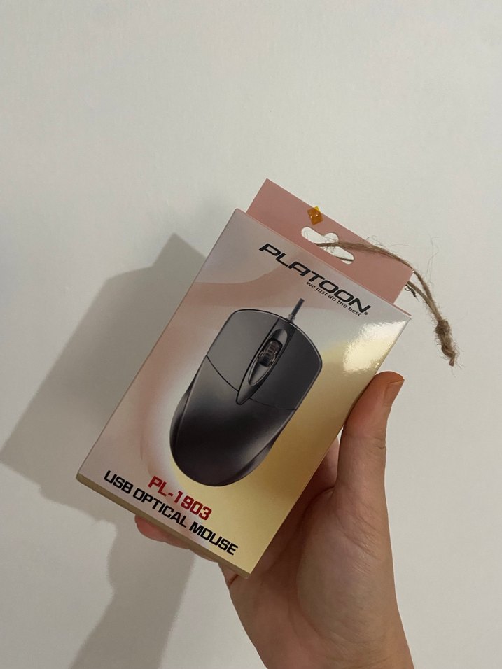 Platoon PL-1903, USB bağlantılı, koyu bej renkli kablolu optik mouse'tur. ️