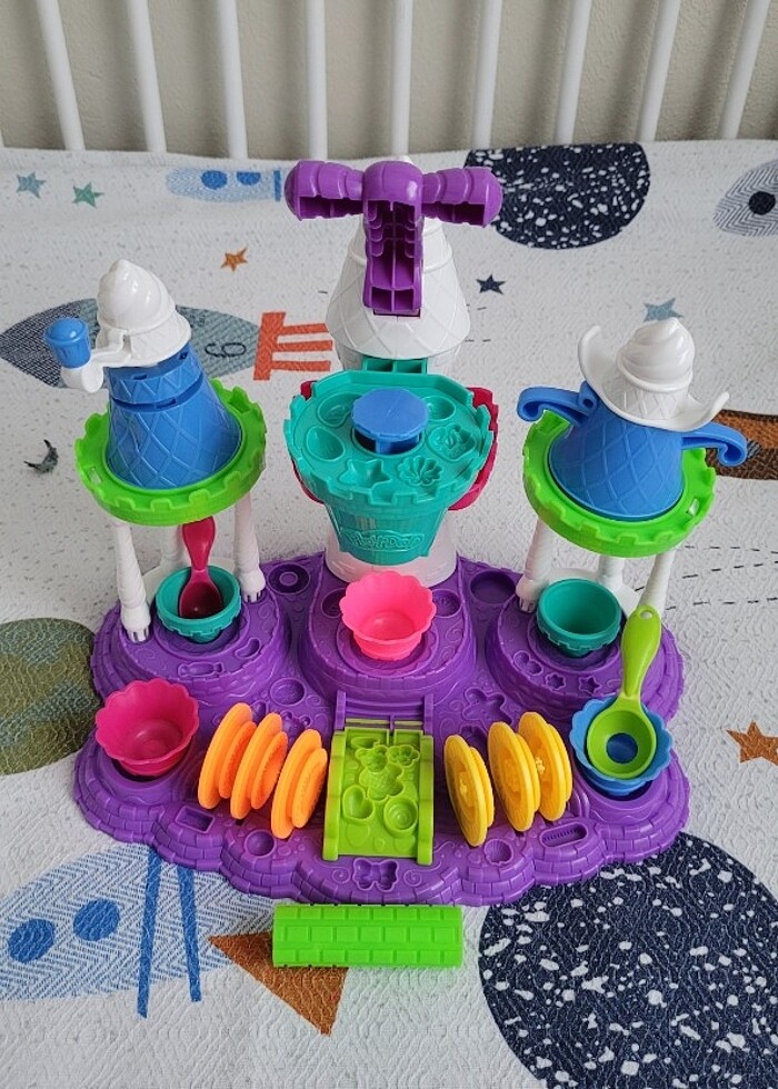 Play Doh Dondurma Dükkanı Dondurmanızı külahta mı isterseniz yoksa kasede mi? Usta Dondurmacım ile çocukların dondurma hayalleri gerçeğe dönüşüyor. Kolayca kullanılabilen kalıplar ve sıkma araçlarıyla birbirinden renkli dondurmalar ve pek çok "soğuk" lezzetler hazırlayıp onları süslerken ve sergilerken çocuklar çok eğlenecekler. Fotoğraflarda görüldüğü gibidir. Herhangi bir defo yoktur. Son fotoda işaretli olan 4 parçası yoktur diğer tüm parçaları bulunmaktadır. Çocuklar aynı zamanda büyükler için de gerçekten çok güzel ve zaman geçirdikleri bir oyun aracıdır. Orijinal üründür.