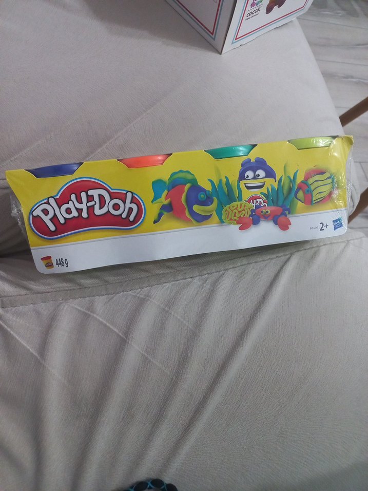 2 yaş ve üzeri çocuklar için Play-Doh renkli oyun hamuru seti, toplam 489 gram ağırlığında.