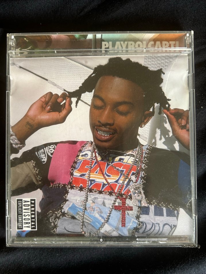 Playboi Carti'nin renkli kıyafetler ve takılarla kapakta yer aldığı, ebeveyn danışmanlığı etiketi bulunan CD albümü.