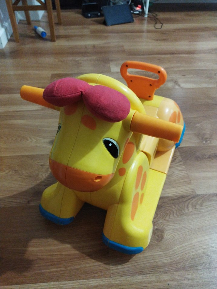 Playskool Zürafa, sallanır bebekler için uygun bir oyuncak, temiz kulaklarından biri ses çıkarır.