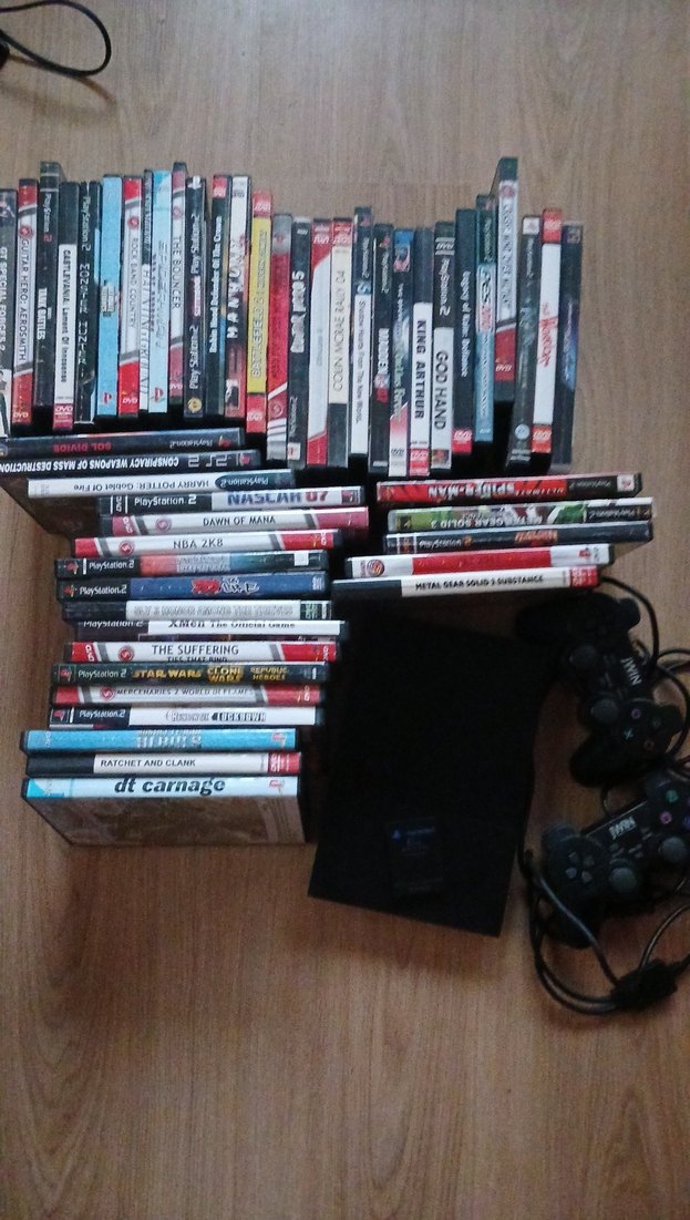 PlayStation 2 konsol, iki kablolu kontrolcü ve çok sayıda oyun diski içerir. Geniş oyun seçenekleri sunar .