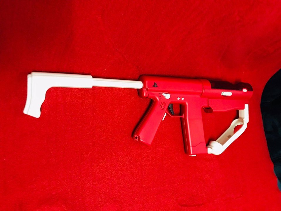Canlı kırmızı gövdesi ve uzun beyaz namlusu ile güvenli oyun için tasarlanmış oyuncak tabanca. her fonksiyonları çalışıyor