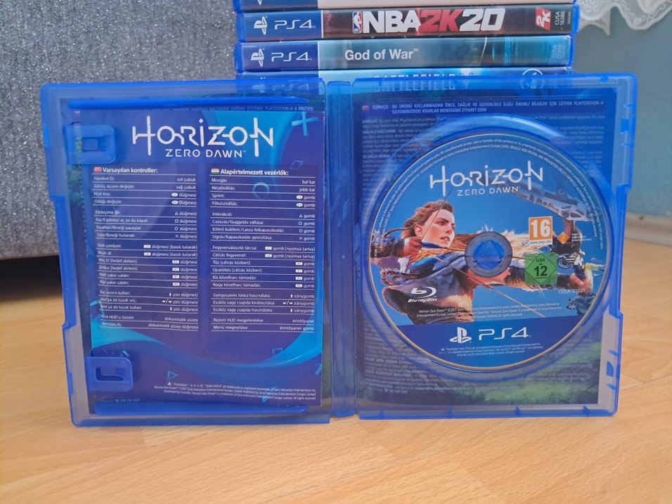 PlayStation 4 oyunu Horizon Zero Dawn oyunları, detaylı kullanım kılavuzları ve disklerle birlikte.